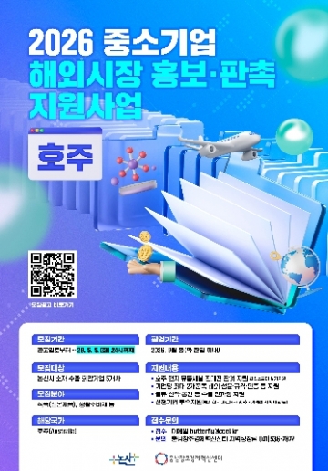 충남혁신센터, ‘중소기업 해외시장 홍보판촉 지원사업(호주)’ 참가기업 모집